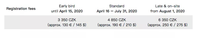 Registration fee covers access to all conference sessions, program booklet, e-book of abstracts, welcome drink on August 26, refreshments served during coffee breaks and VAT. Lunches and social dinner are not covered by the registration fee and can be ordered separately in the on-line registration form.