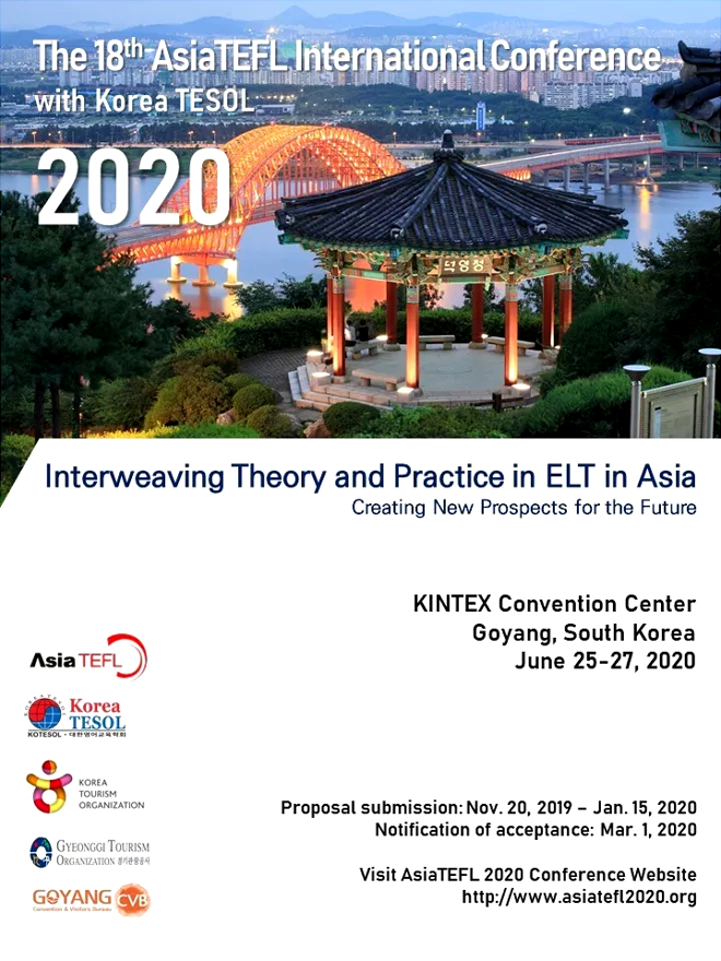 The 18th AsiaTEFL International Conference’s theme is “Interweaving Theory and Practice in ELT in Asia: Creating New Prospects for the Future,” which stresses the importance of applying theory to the classroom. We welcome proposals on all aspects of ELT.